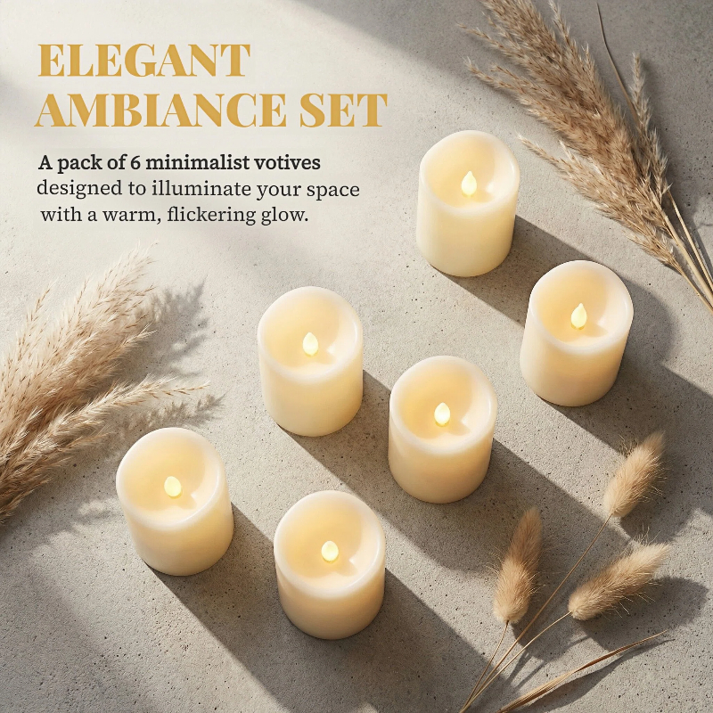Simplelight Pack of 6 Votive Candles Battery Operated, Battery Fake Candles Warm White Color or Amber Color for wedding, table decor