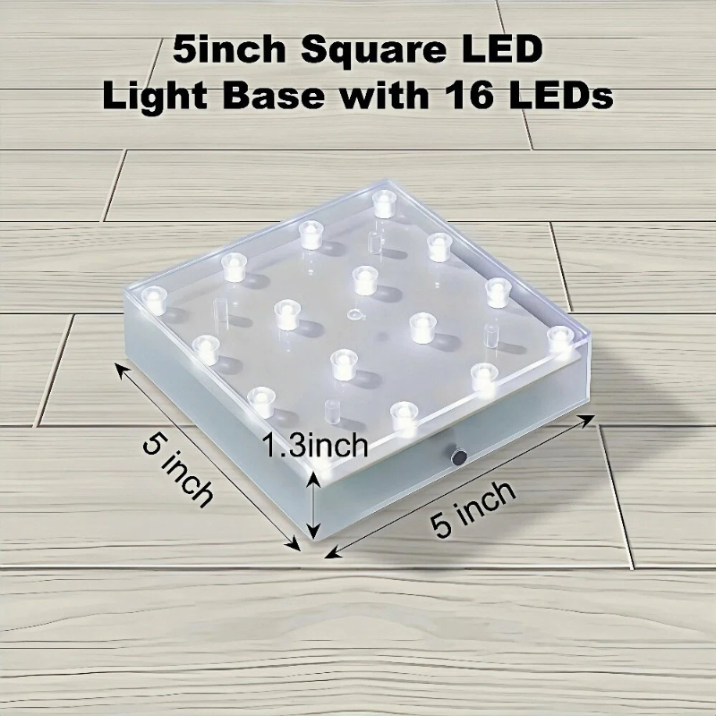 Simplelight 5 Inch Square LED Light Base - Perfect for Glass Art, Ideal Led Display for Vases, Centerpieces