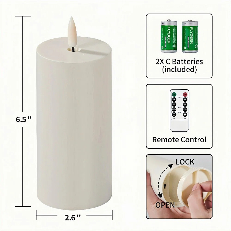 Simplelight Outdoor waterproof flameless candles – 6 inch White Flameless Candles with Timer, Realistic Black Wick Candles Battery Operated, Set of 3